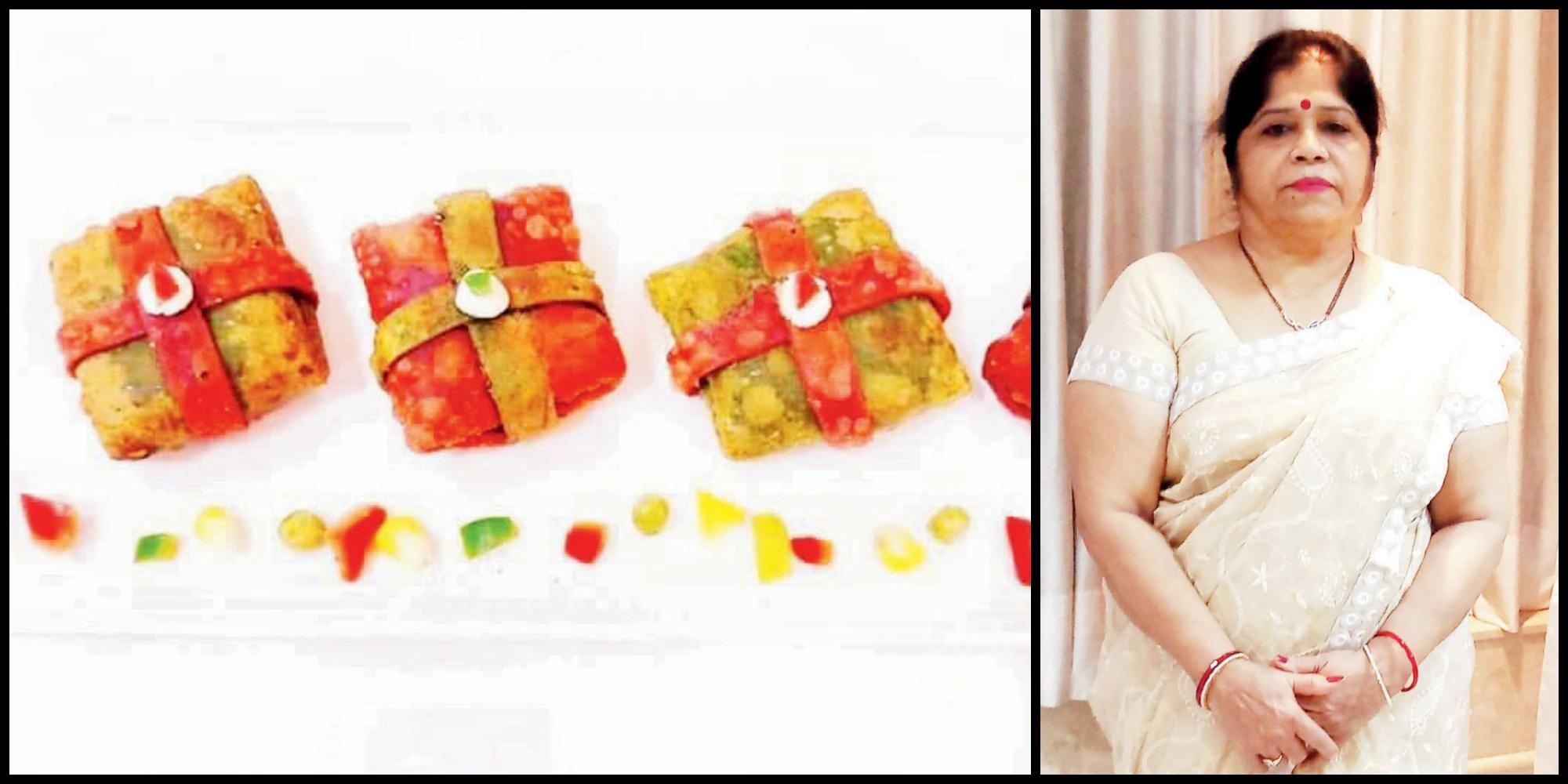 કણક માટે સામગ્રી : ૧ કપ ઘઉંનો લોટ, ૨-૩ ચમચી પાલકની પેસ્ટ, ૧થી ૨ ટીસ્પૂન બીટરૂટ પેસ્ટ, પા ટીસ્પૂન અજમો, ૨ ટીસ્પૂન તેલ, સ્વાદ પ્રમાણે મીઠું